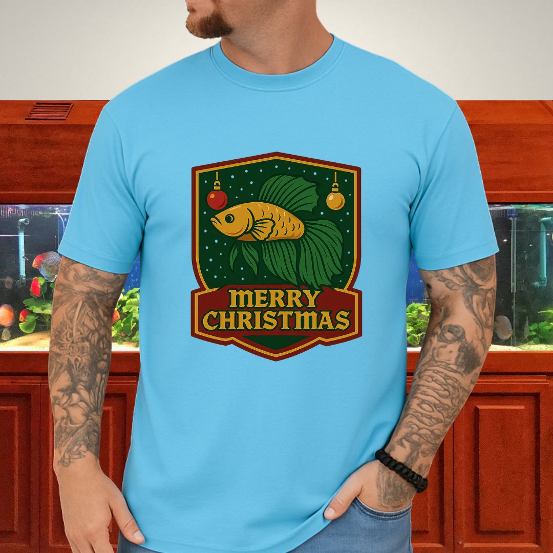 Christmas Betta Shield Tee – Bold Holiday Emblem Design