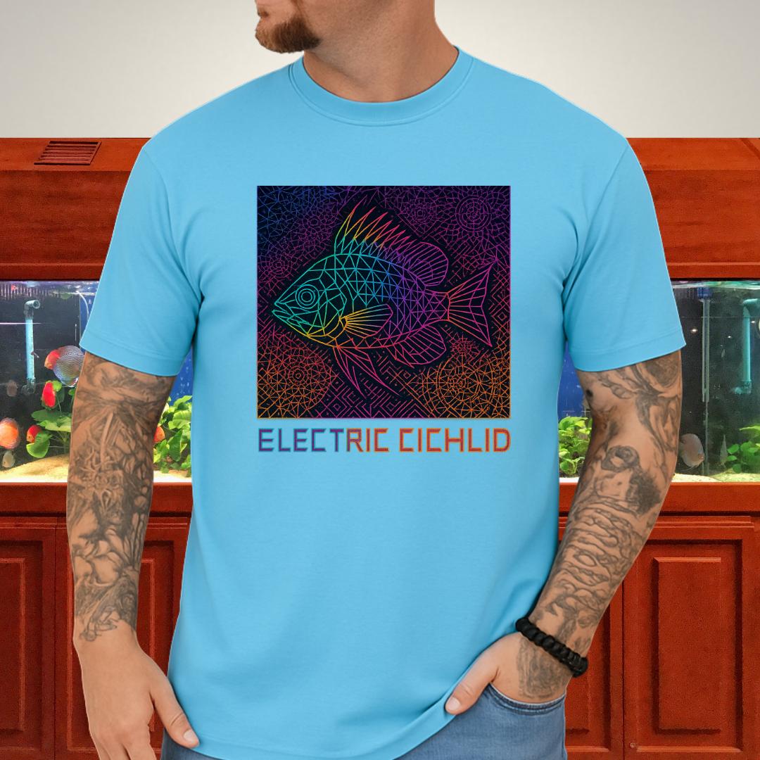 Electric Cichlid Tee – Neon German Blue Ram Geometric Design