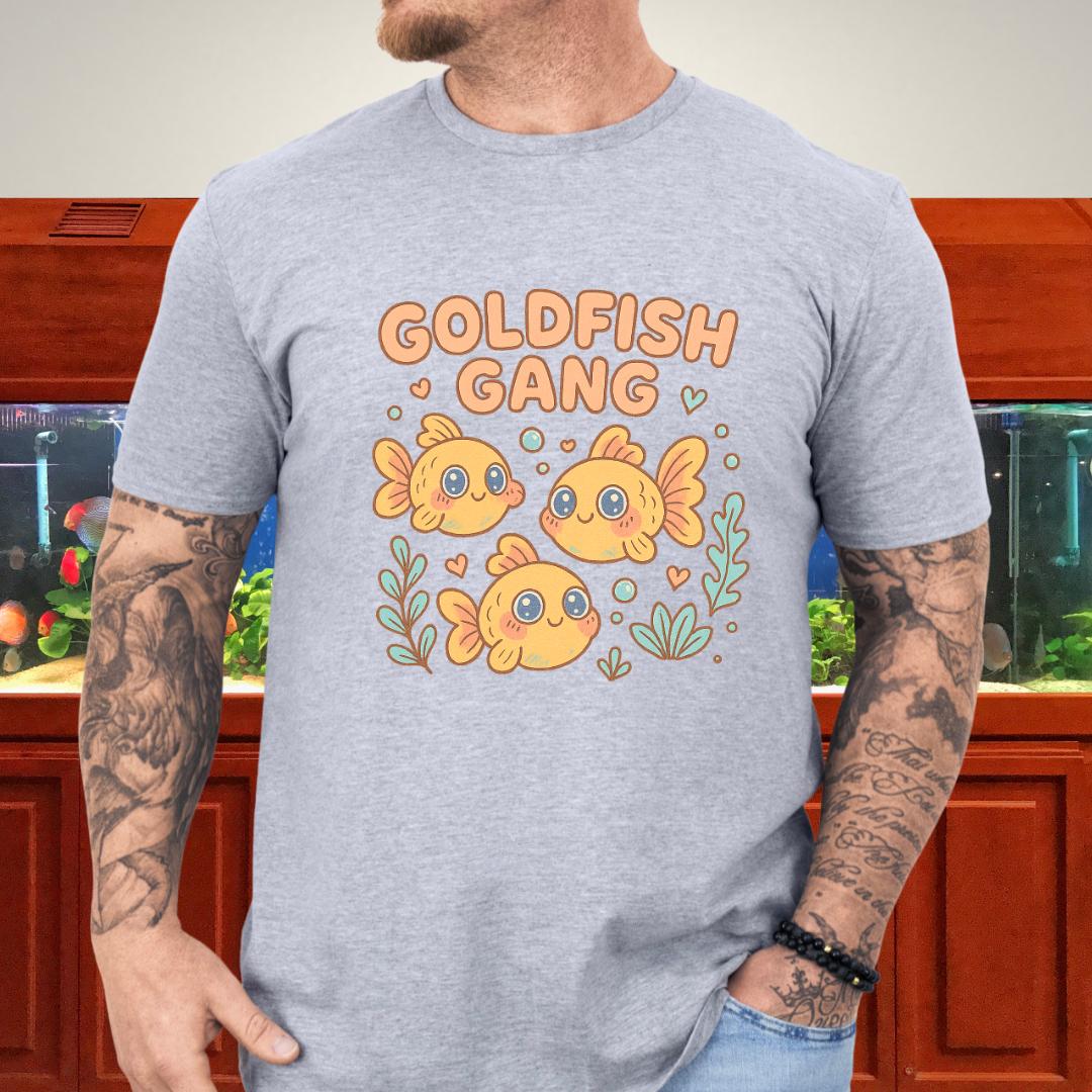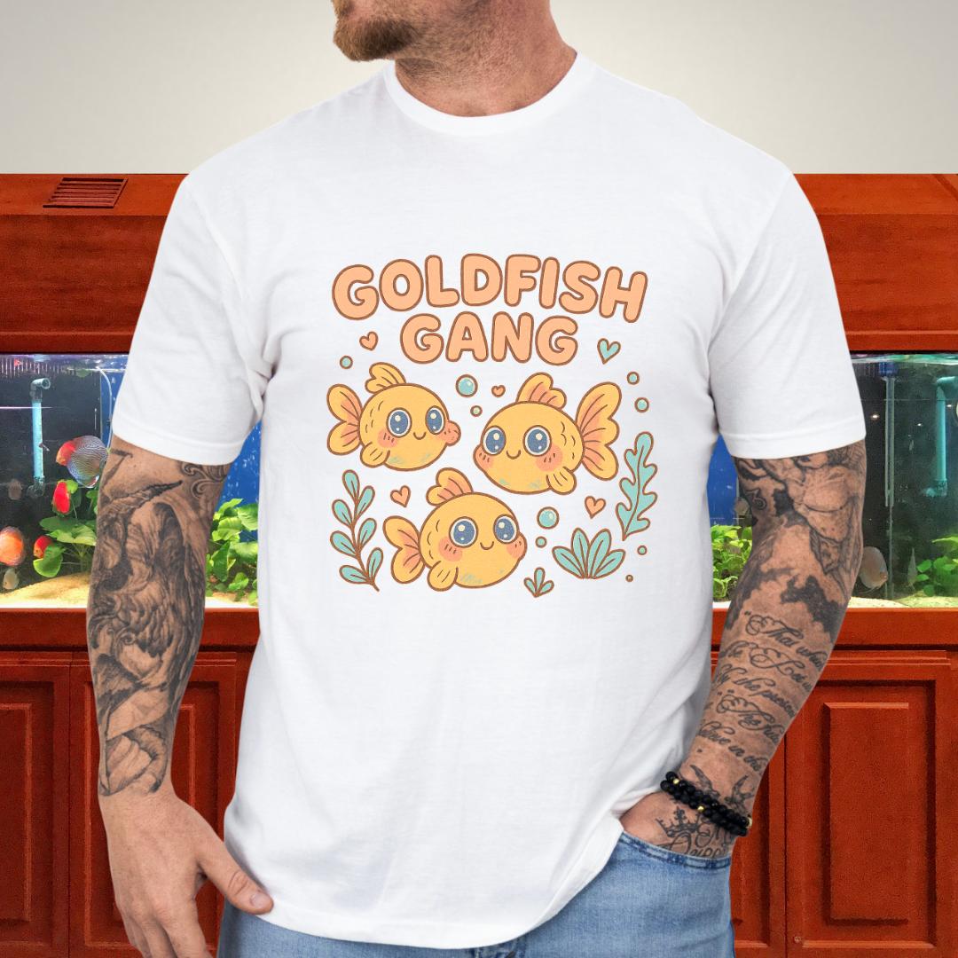 🎨 Design highlight: Cute kawaii goldfish with bubble hearts and “Goldfish Gang” lettering.