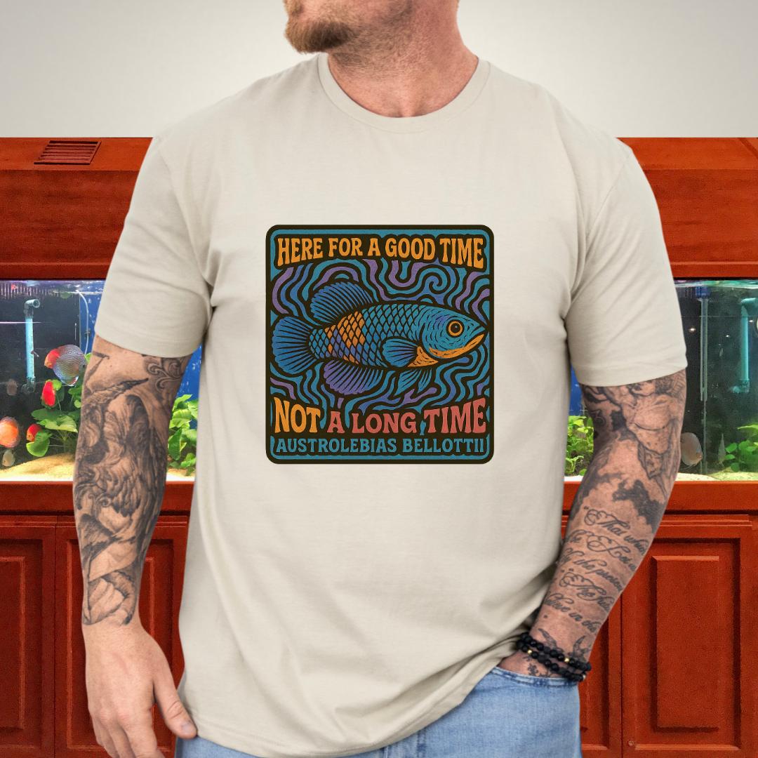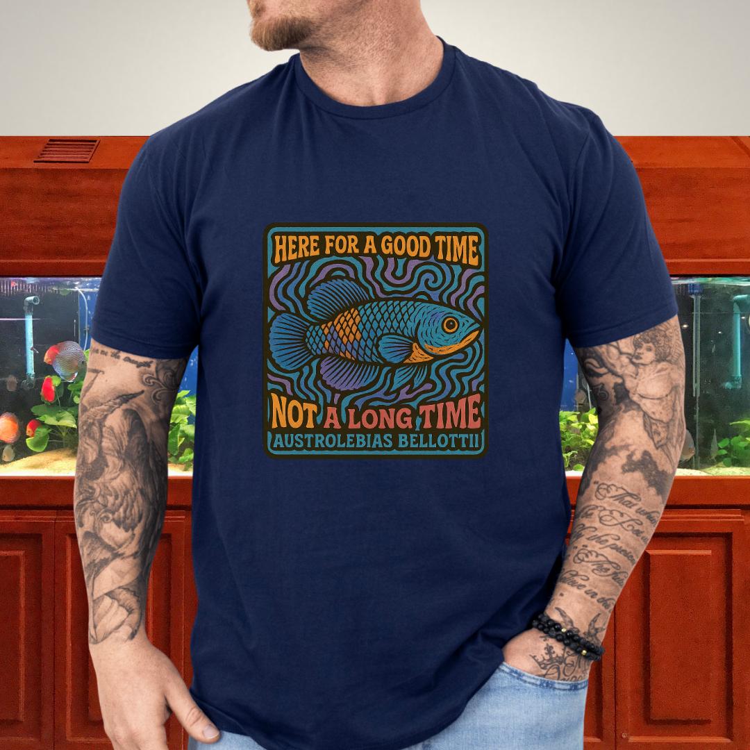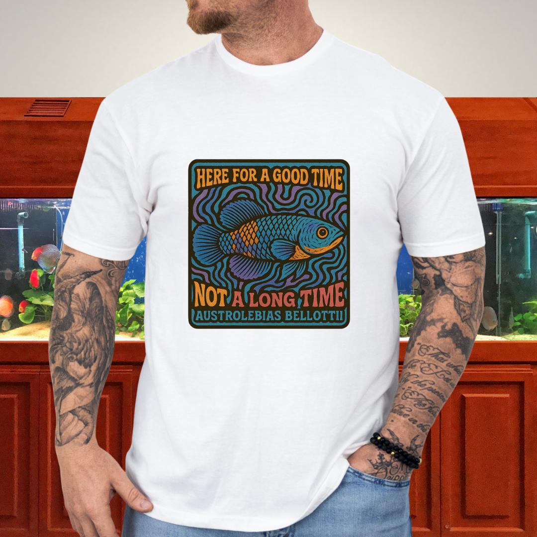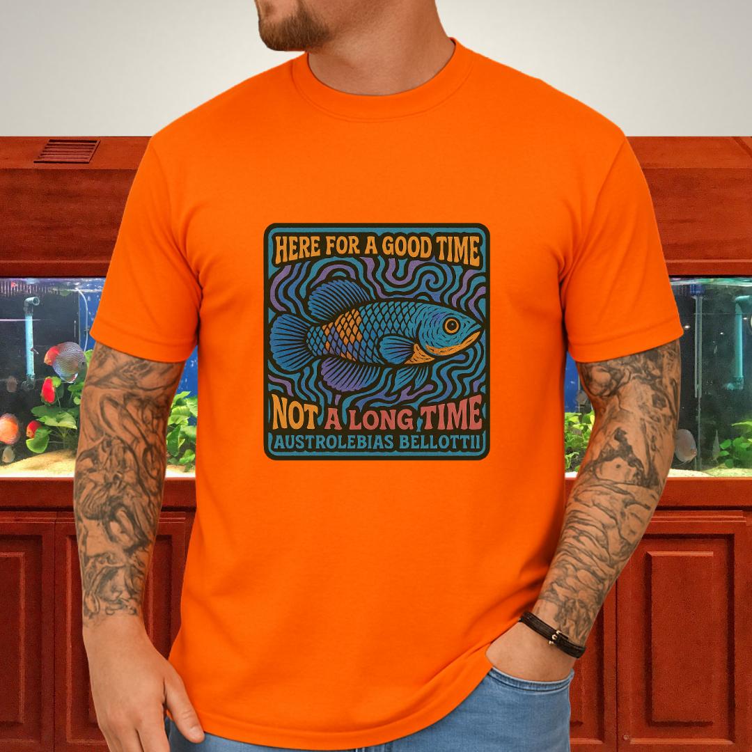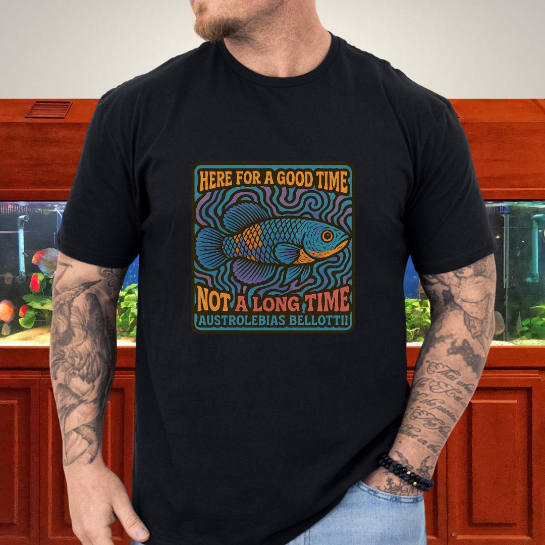Here for a Good Time Tee – Psychedelic Bellottii Killifish