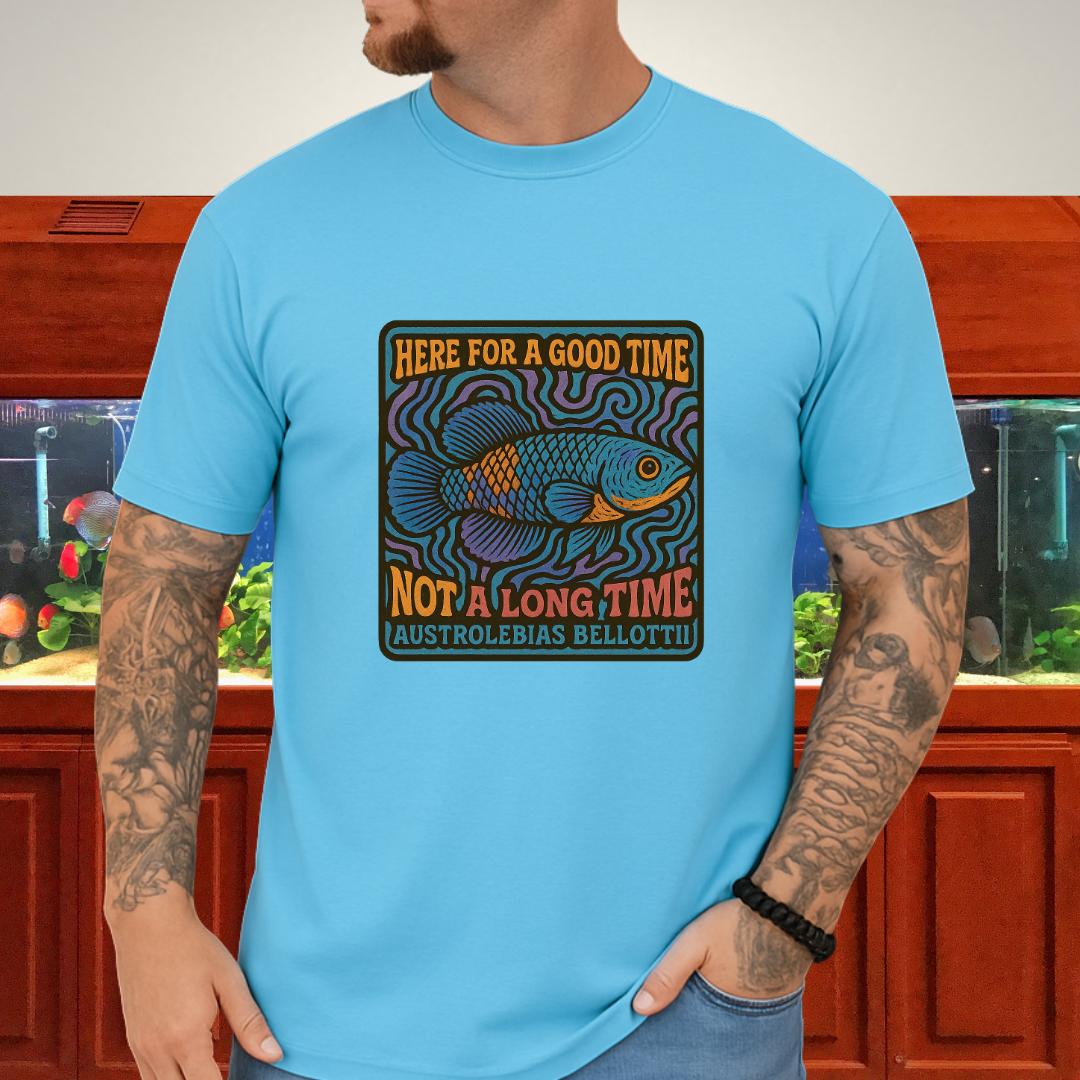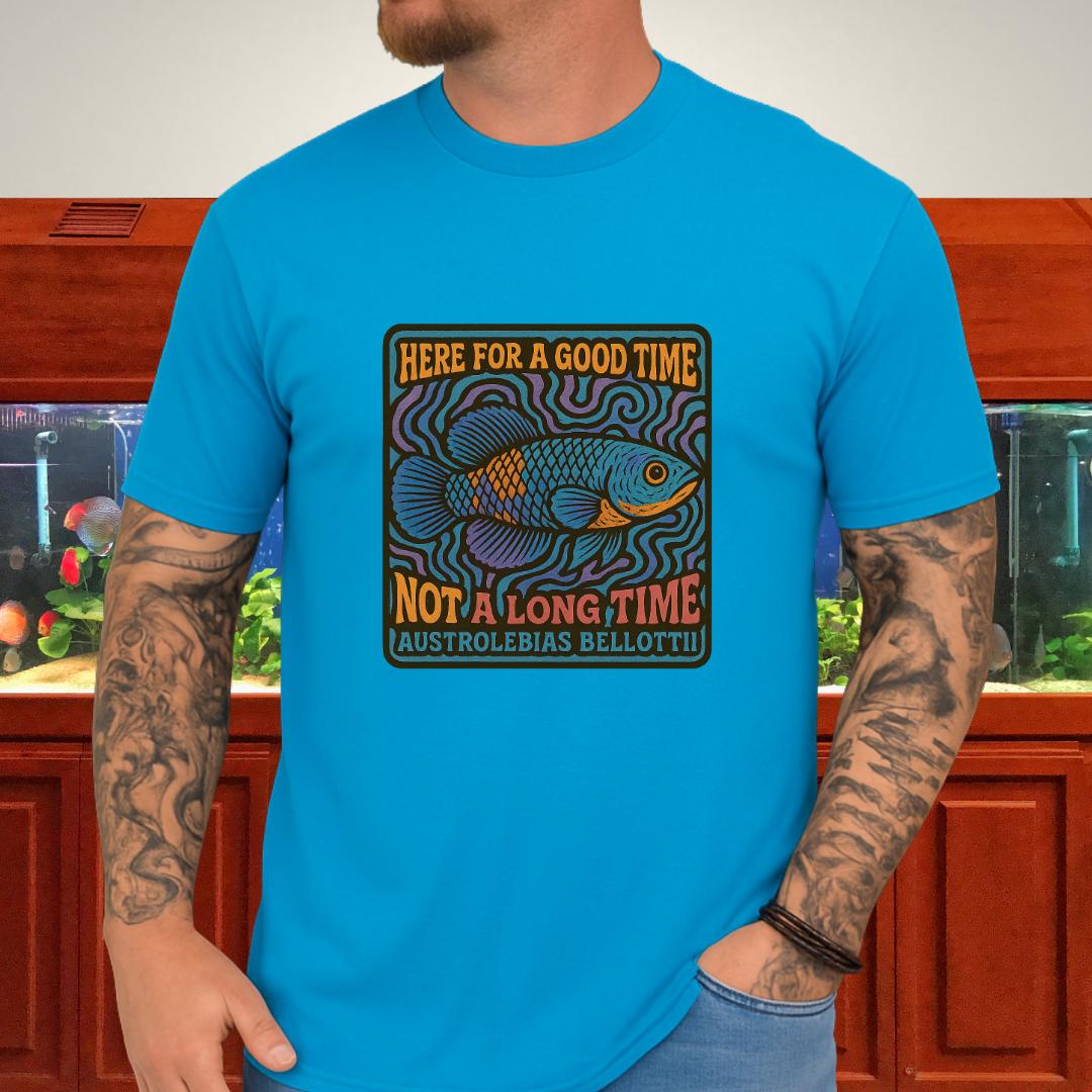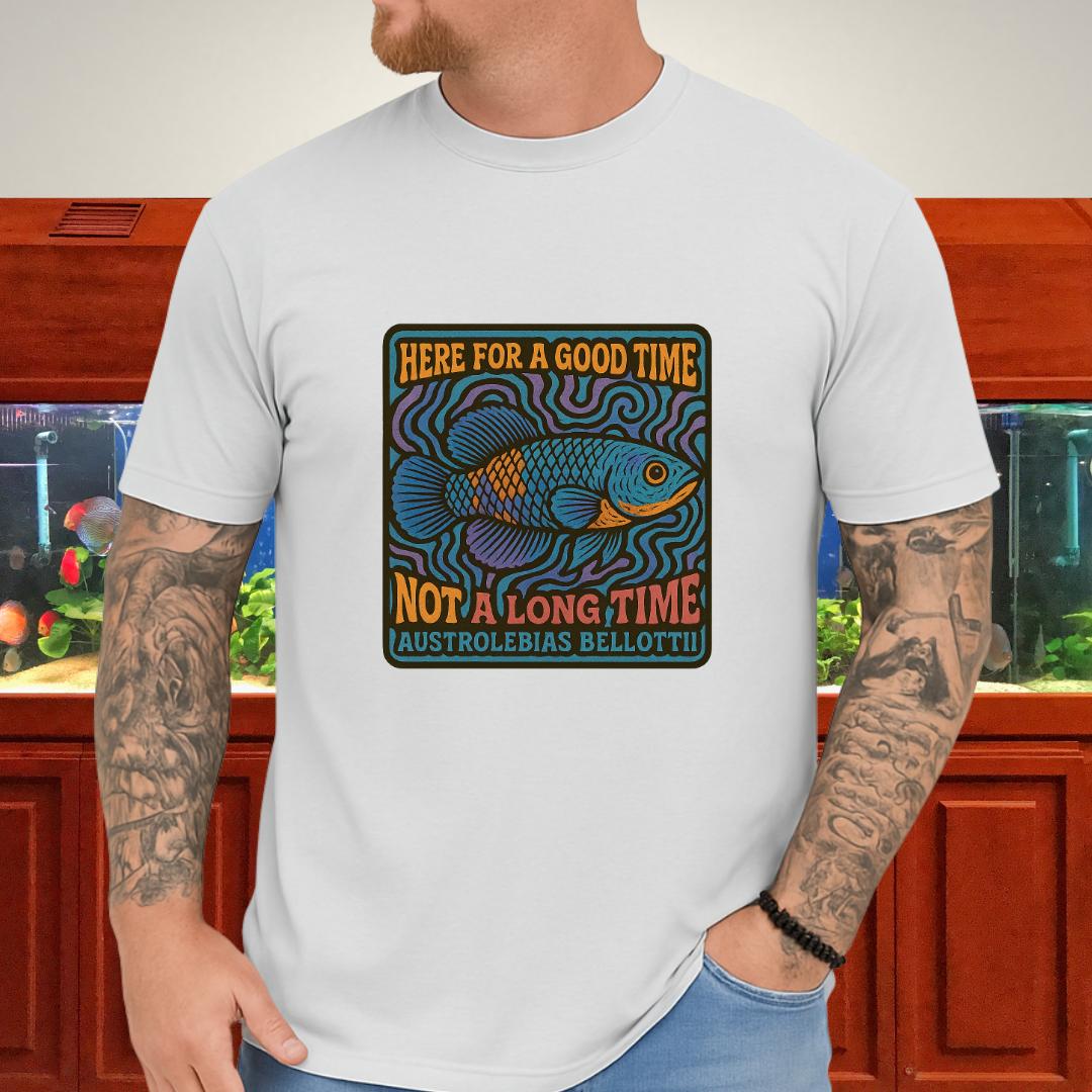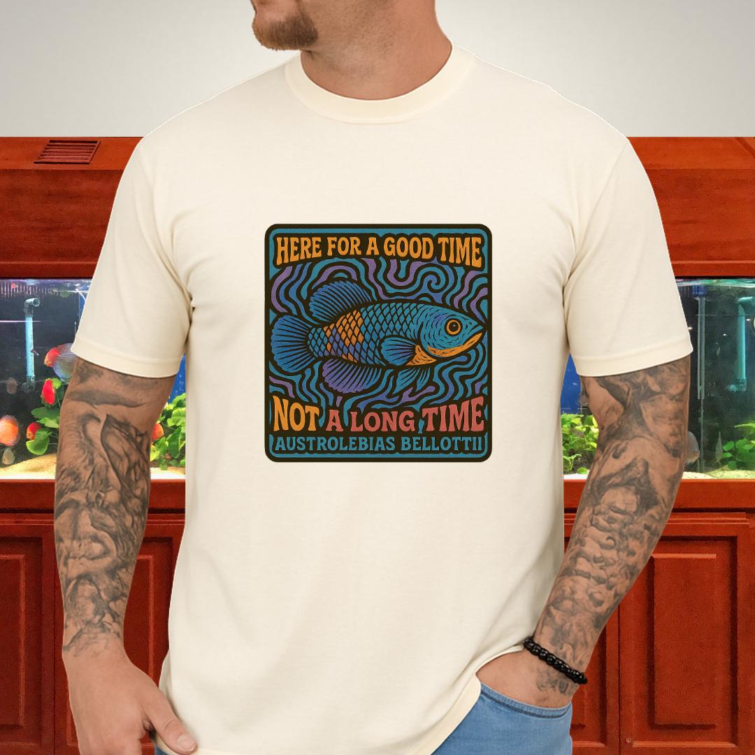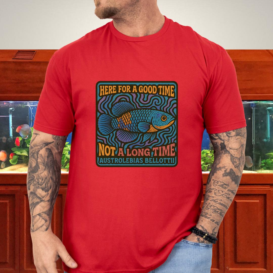 Here for a Good Time Tee – Psychedelic Bellottii Killifish