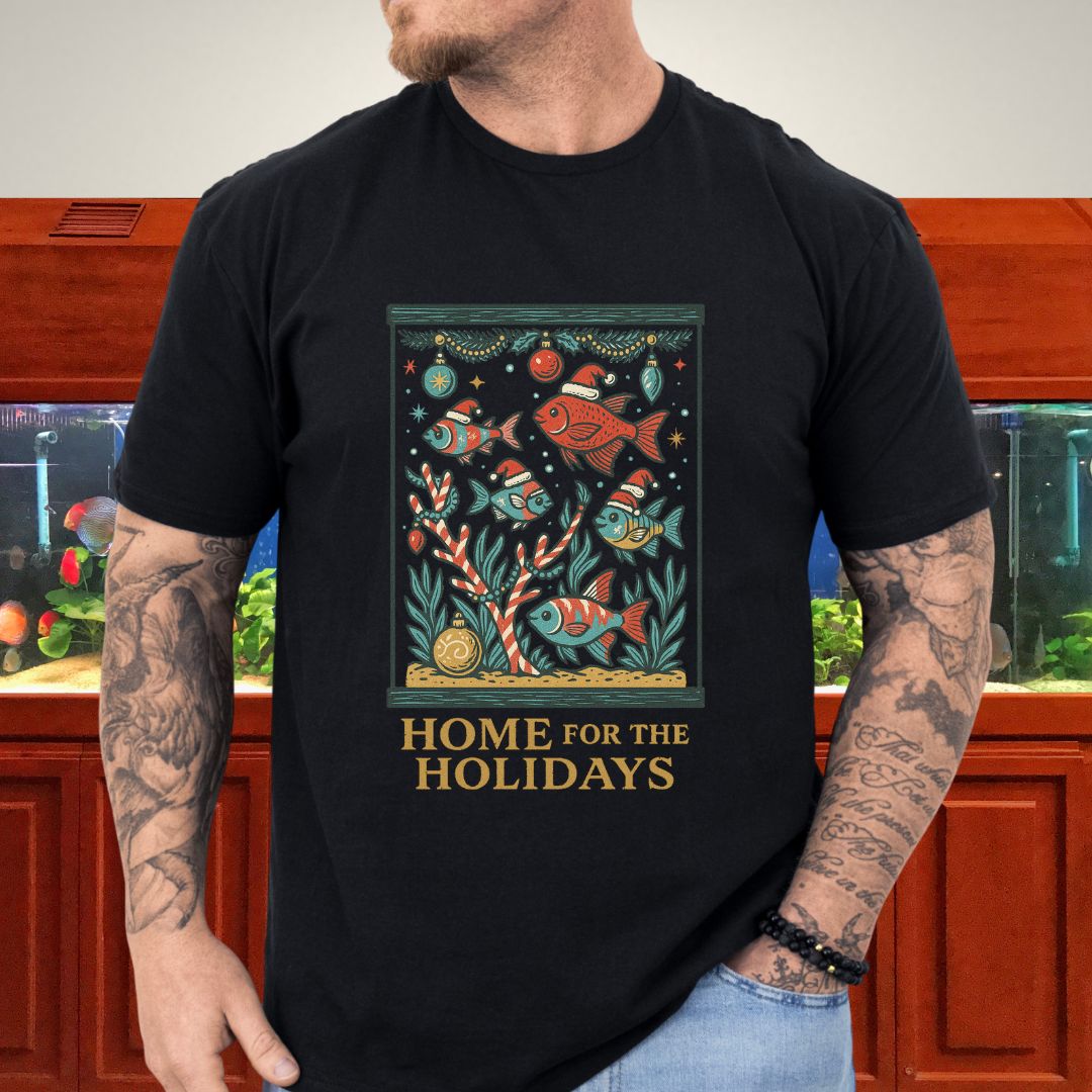 Celebrate the holidays with comfort and aquarium spirit; the Home for the Holidays Aquarium Tee is a festive must-have for fish lovers everywhere.
