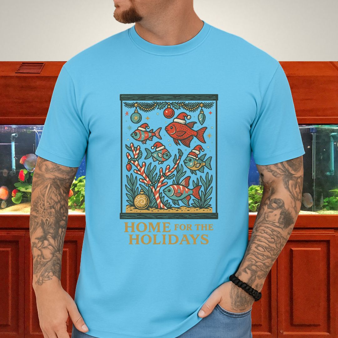 Home for the Holidays Aquarium Tee – Retro Christmas Fish Shirt