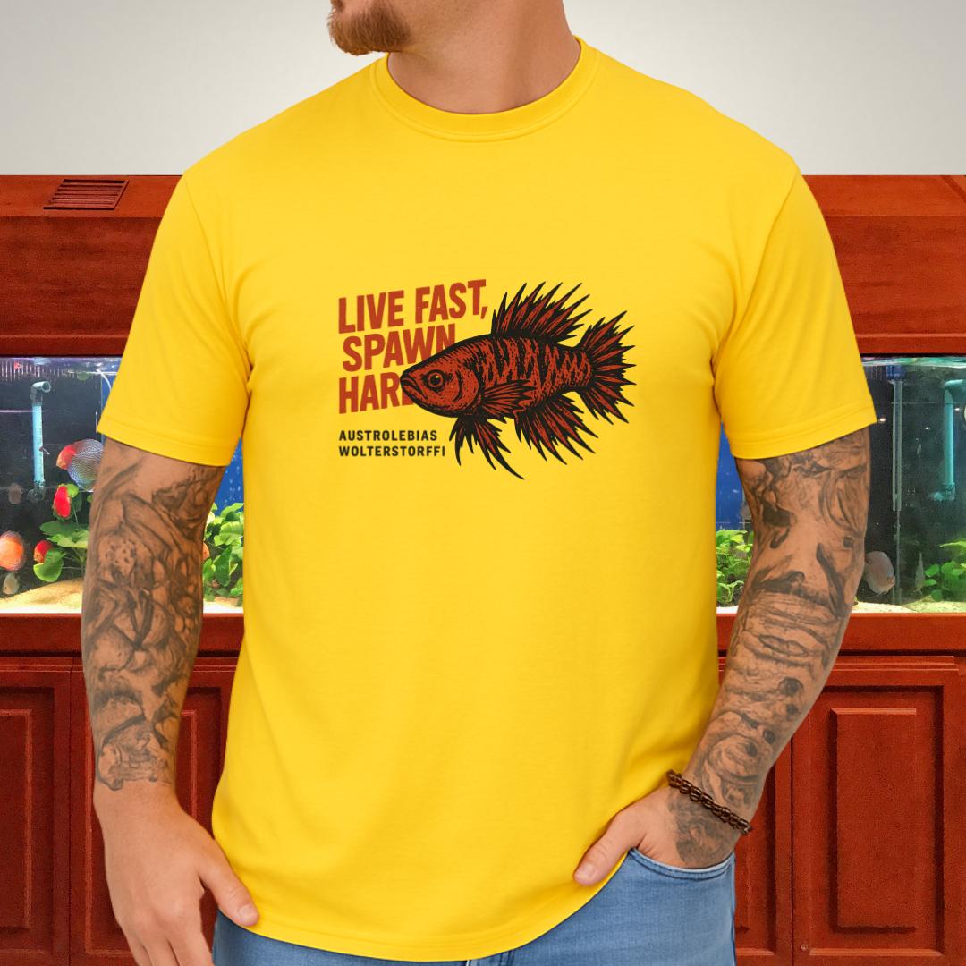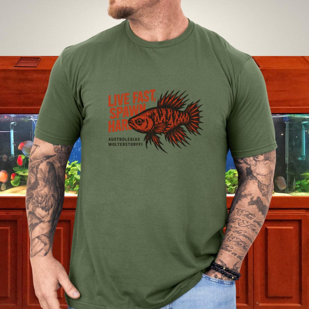 Live Fast, Spawn Hard Tee – Wolterstorffi Killifish Punk Design