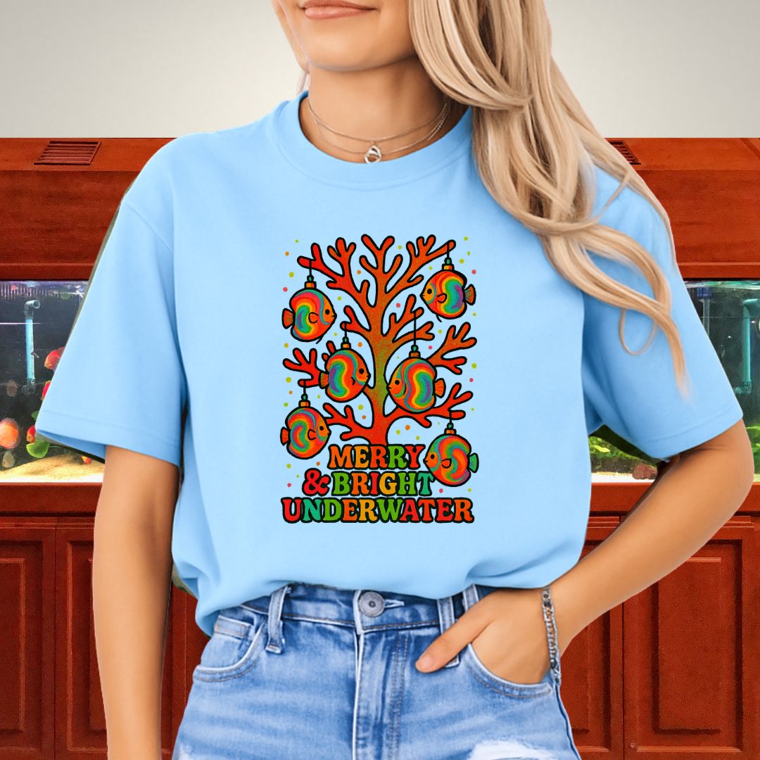 Merry & Bright Underwater Tee – Psychedelic Discus Ornament Design