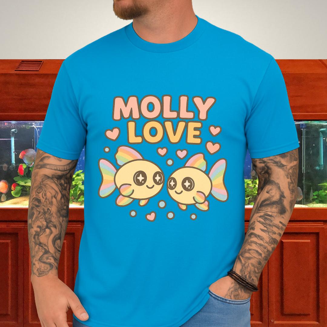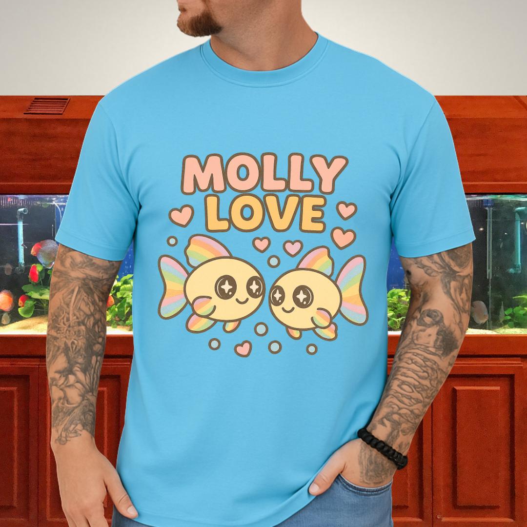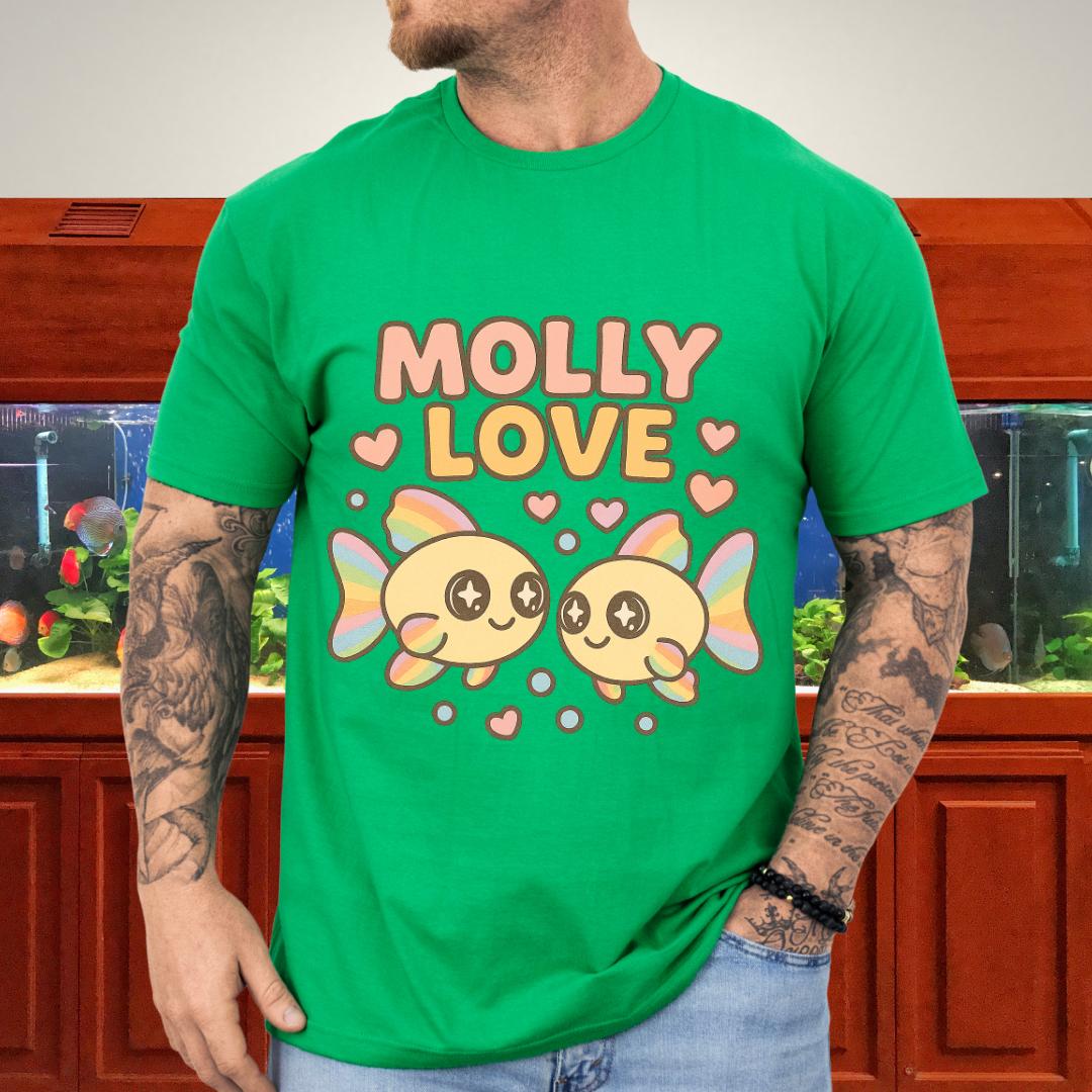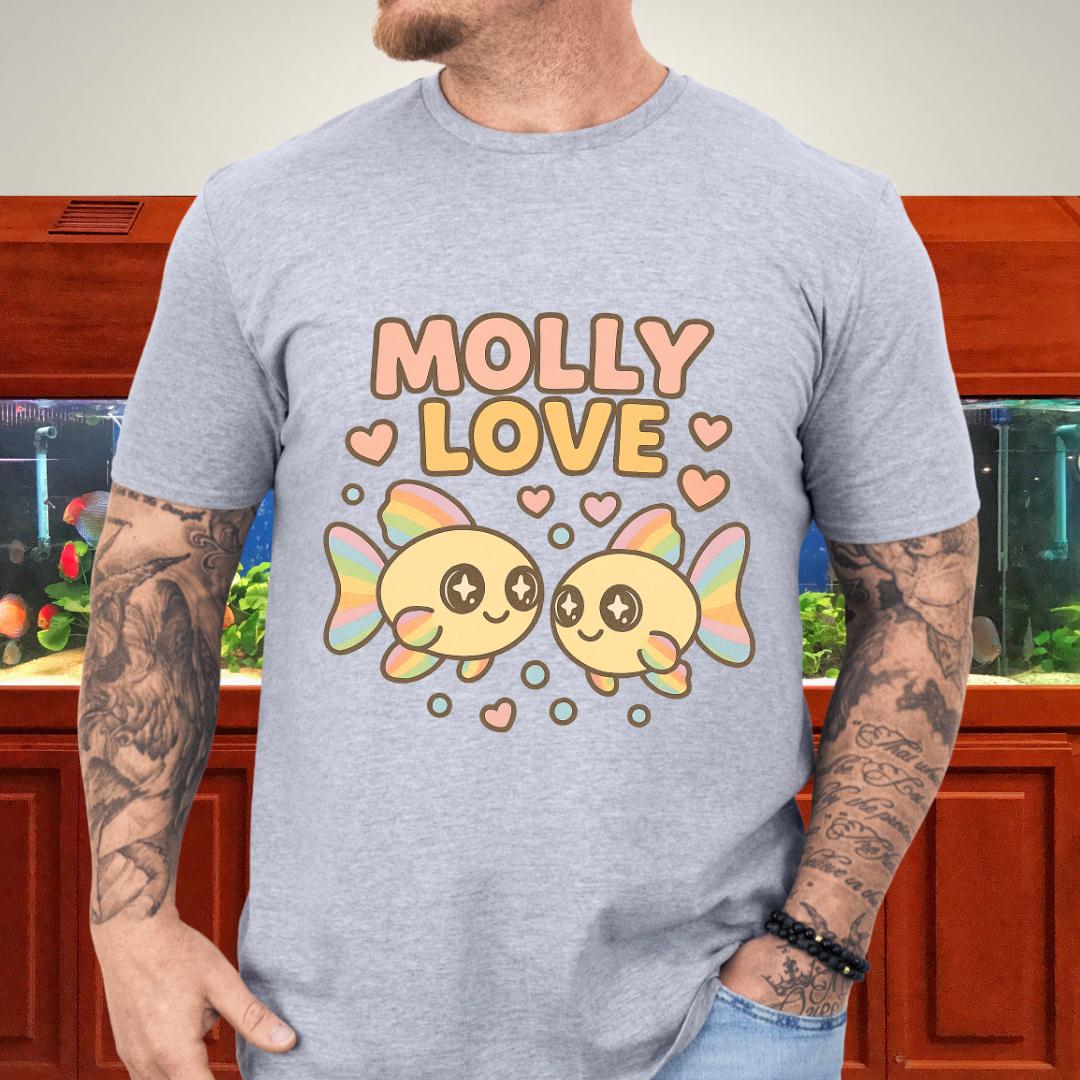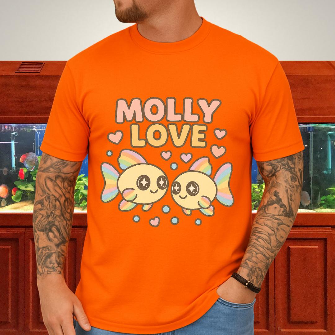 🎨 Design highlight: Kawaii mollies with rainbow fins and heart bubbles.