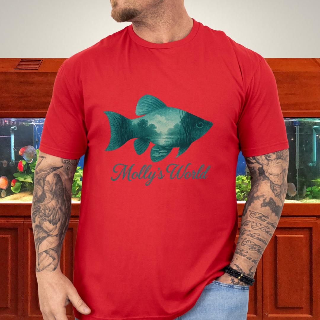🎨 Design highlight: Double exposure molly silhouette with river landscape and “Molly’s World” script.