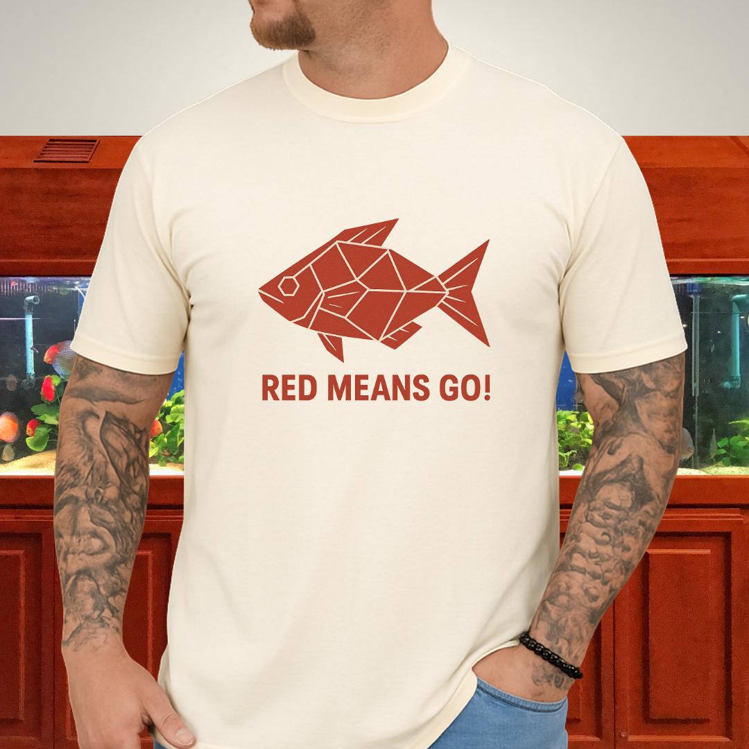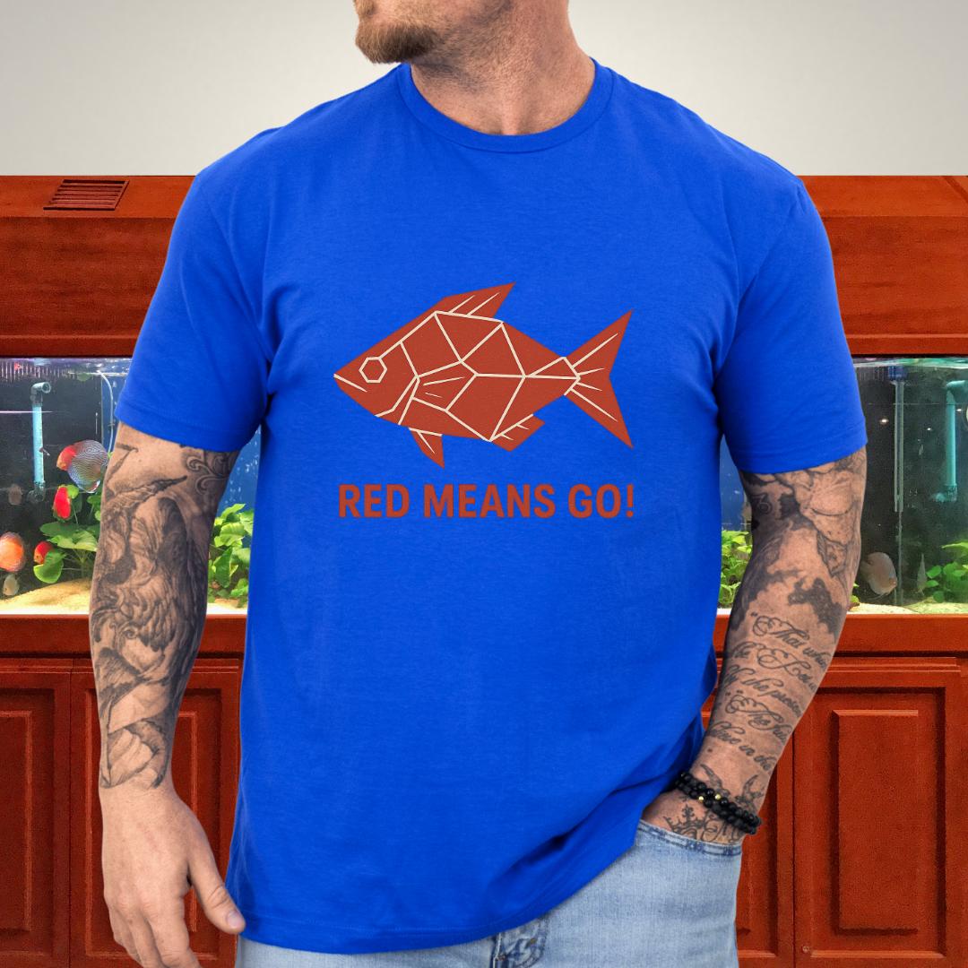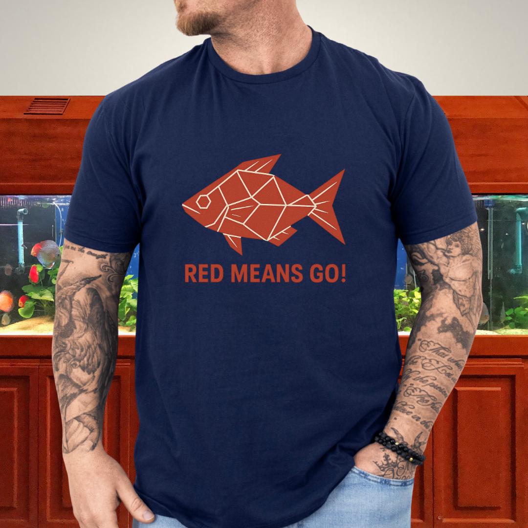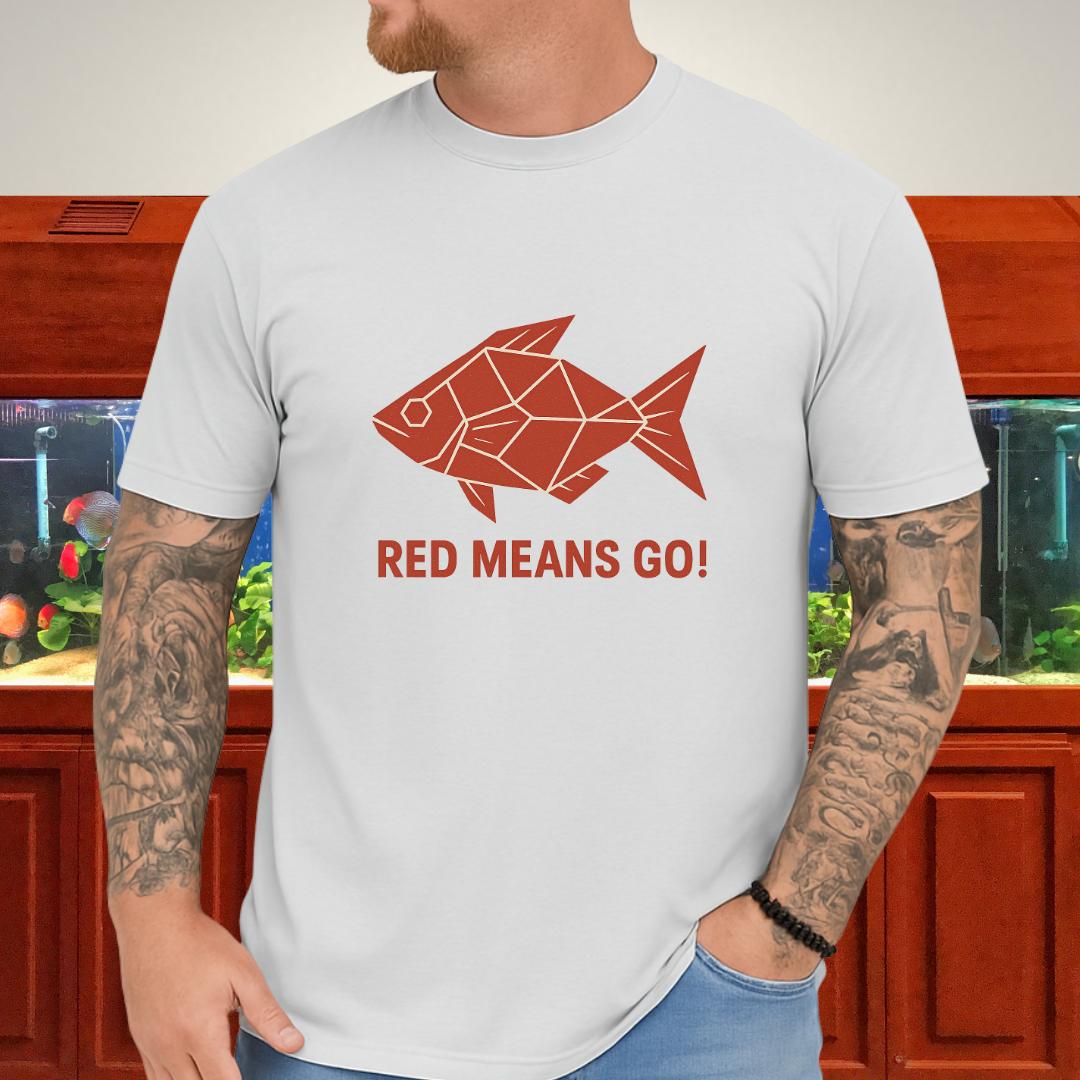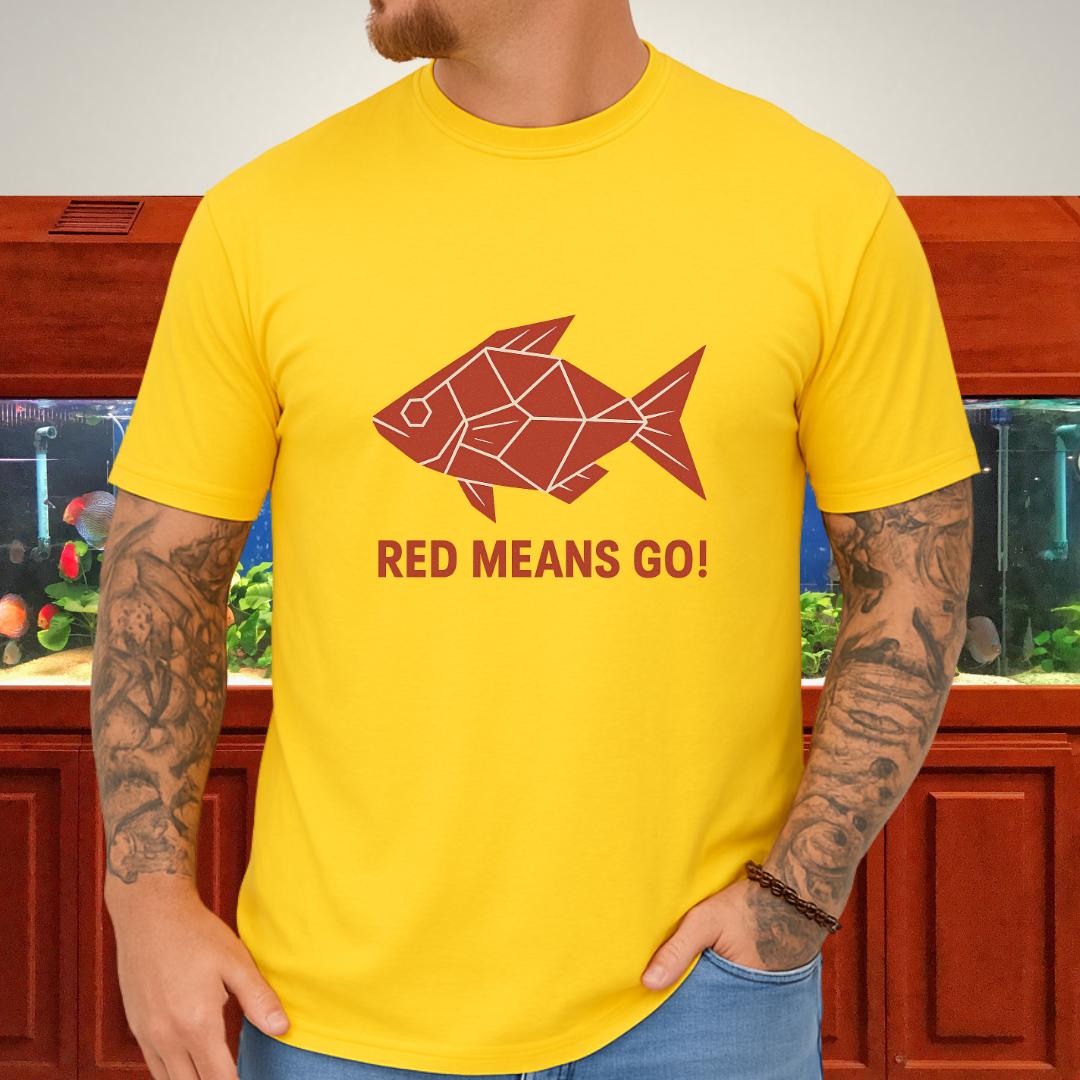 Red Rainbowfish Tee – Geometric “Red Means Go!” Design