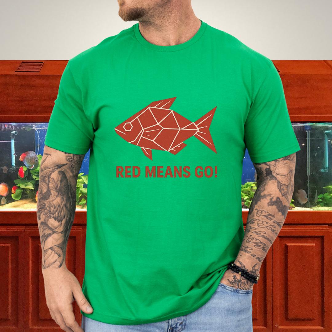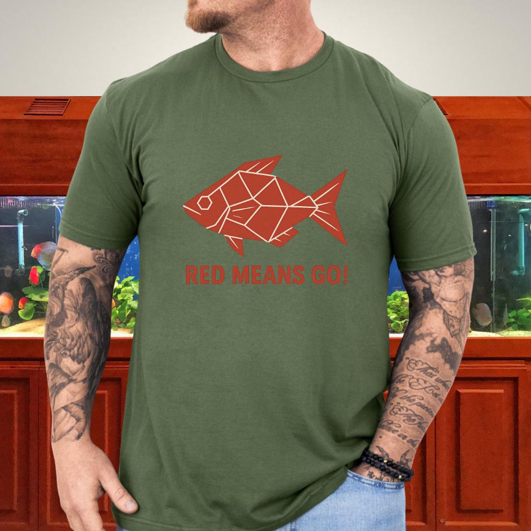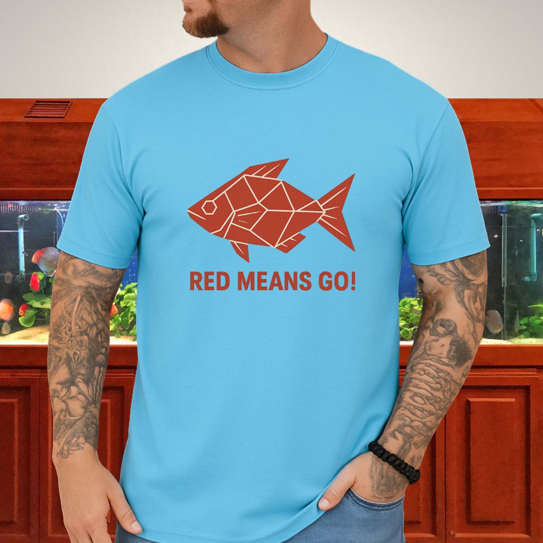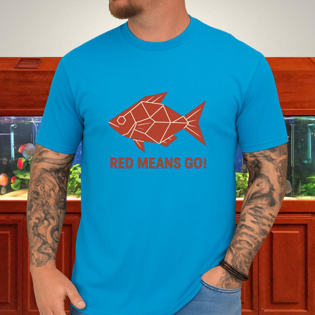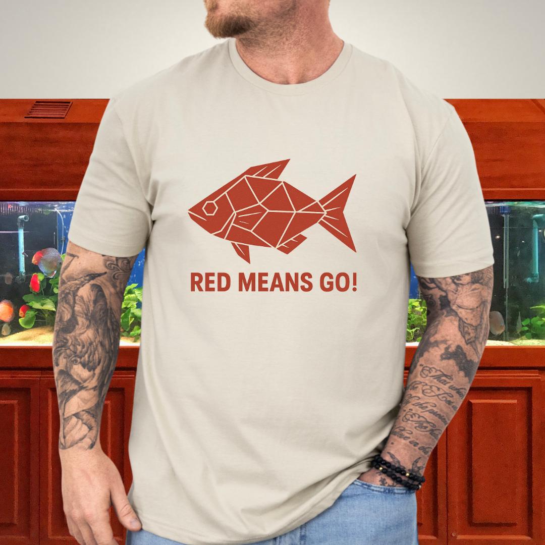 Red Rainbowfish Tee – Geometric “Red Means Go!” Design