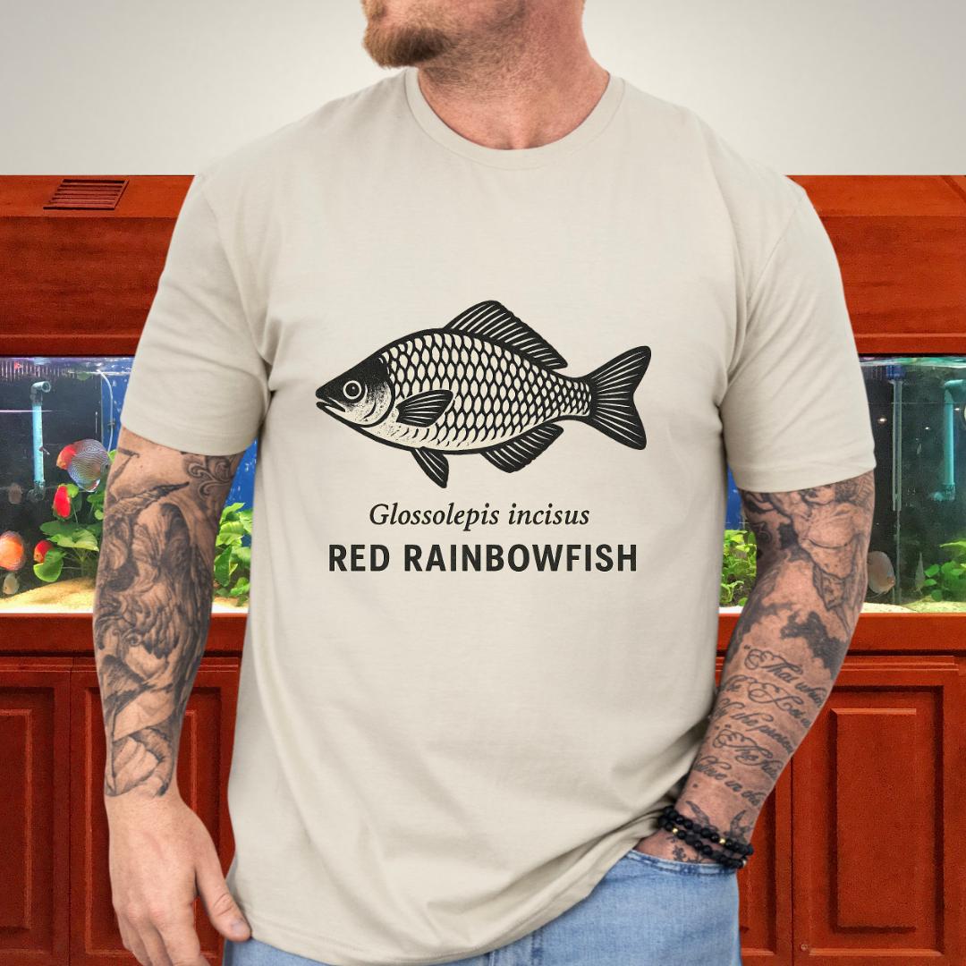 🎨 Design highlight: Striking Red Rainbowfish illustration with bold detailing.