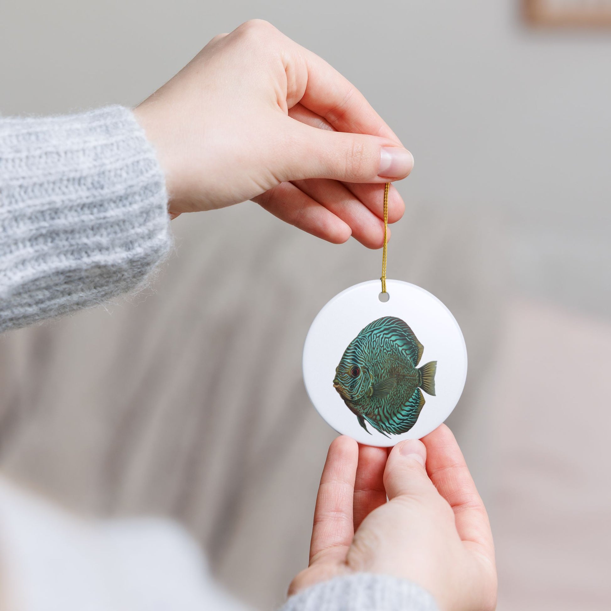 Snake Skin Green Discus Ornament! The round shape offers a classic, versatile look that complements both traditional and modern home decor styles. Whether you make them into a holiday tree decoration, a thoughtful gift, or a stylish accent in your home, it brings warmth to any setting. Their durable yet delicate nature makes them a cherishable item.