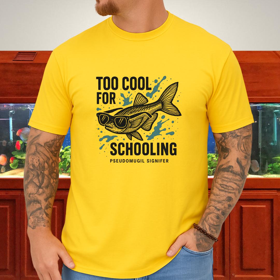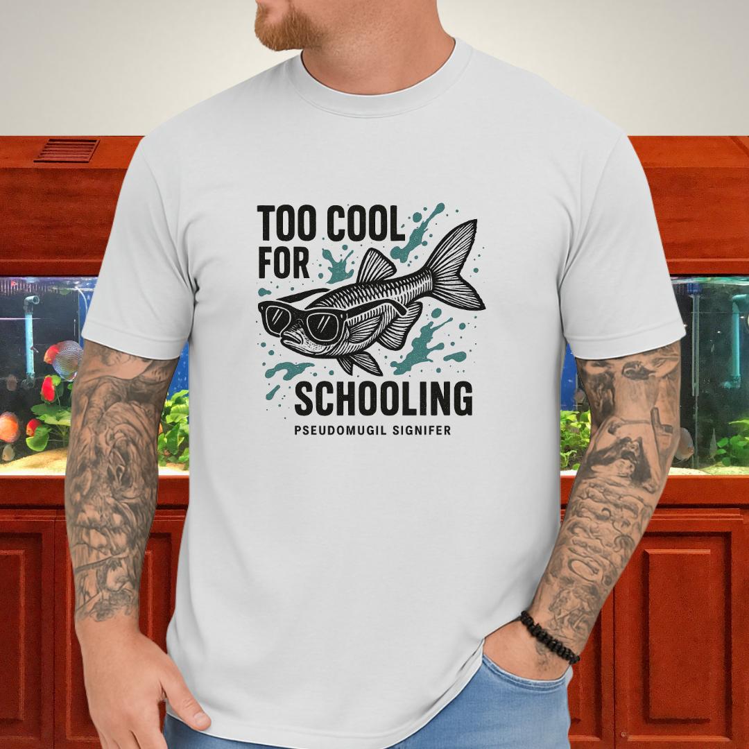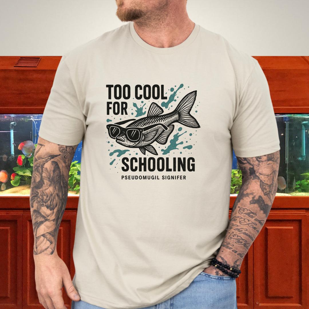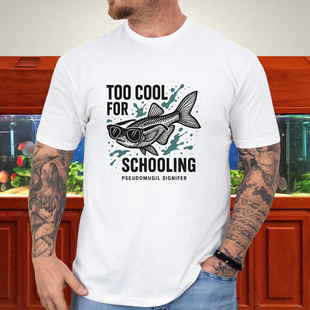 🎨 Design highlight: Playful fish illustration with witty “Too Cool for Schooling” typography.