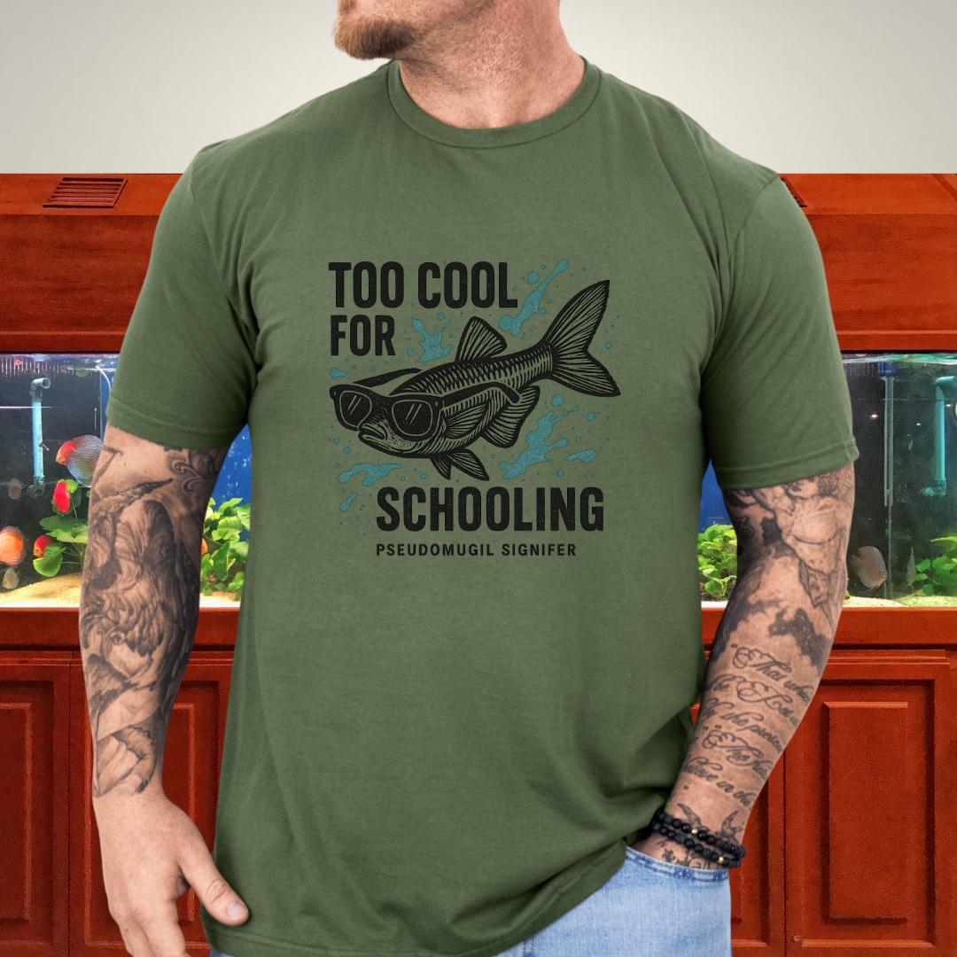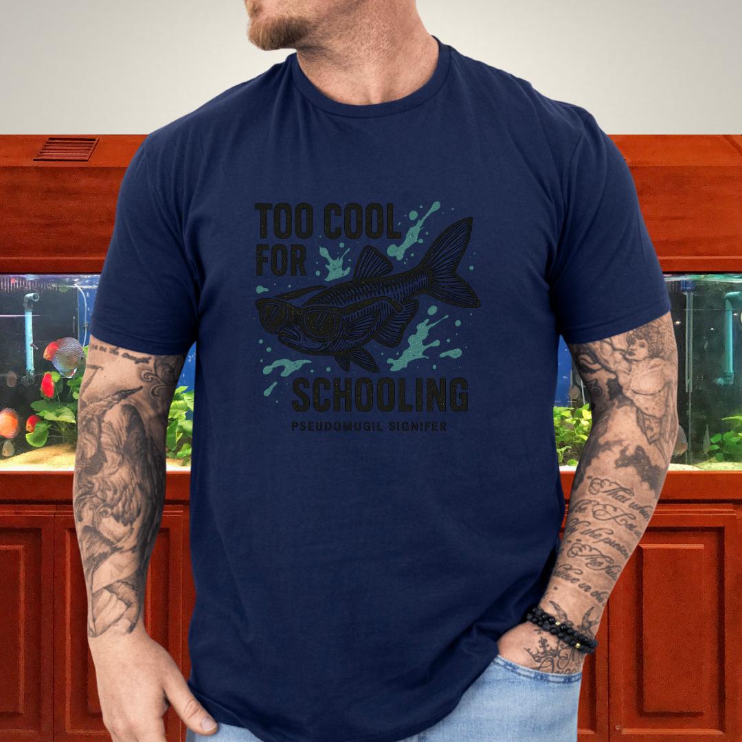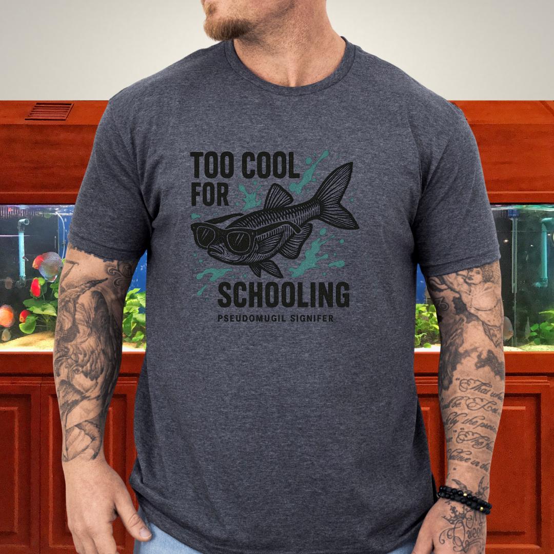 🎨 Design highlight: Playful fish illustration with witty “Too Cool for Schooling” typography.