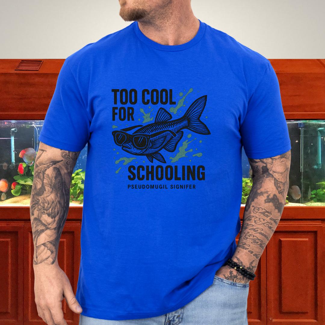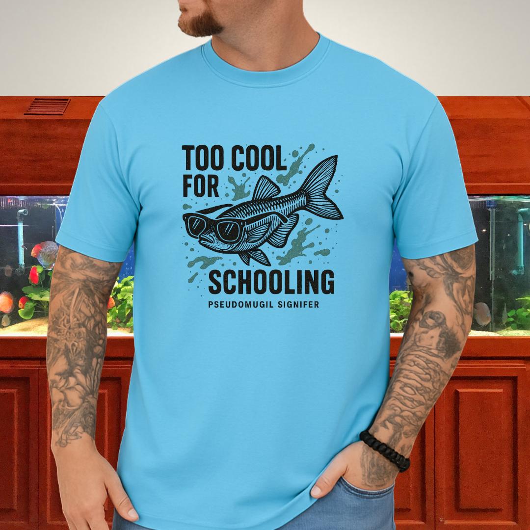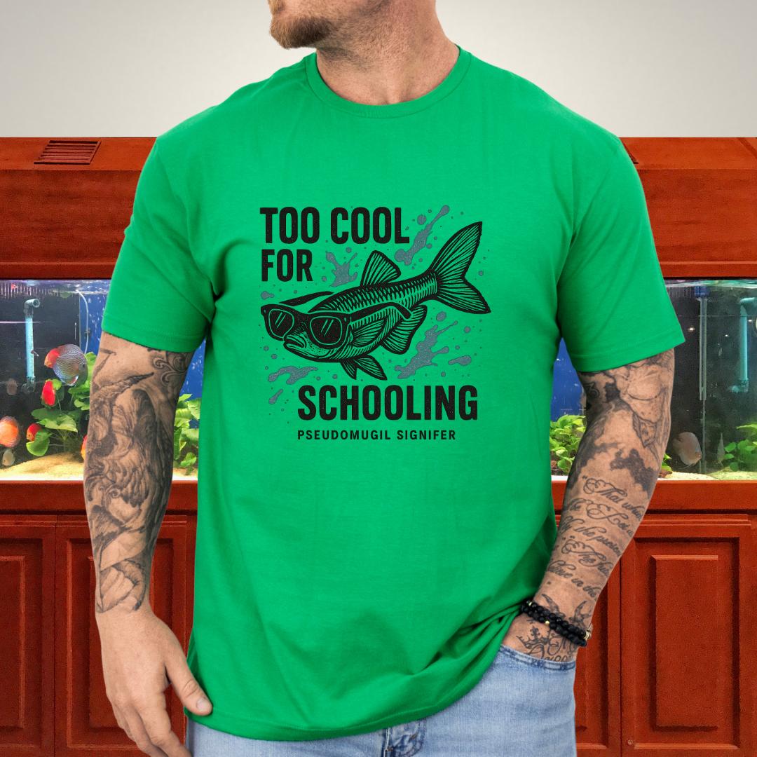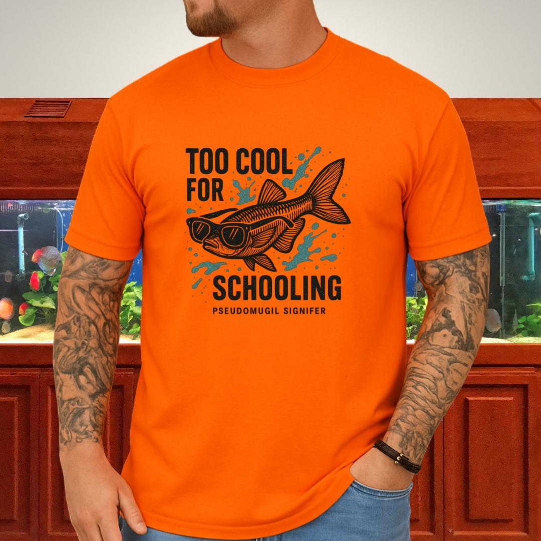 🎨 Design highlight: Playful fish illustration with witty “Too Cool for Schooling” typography.